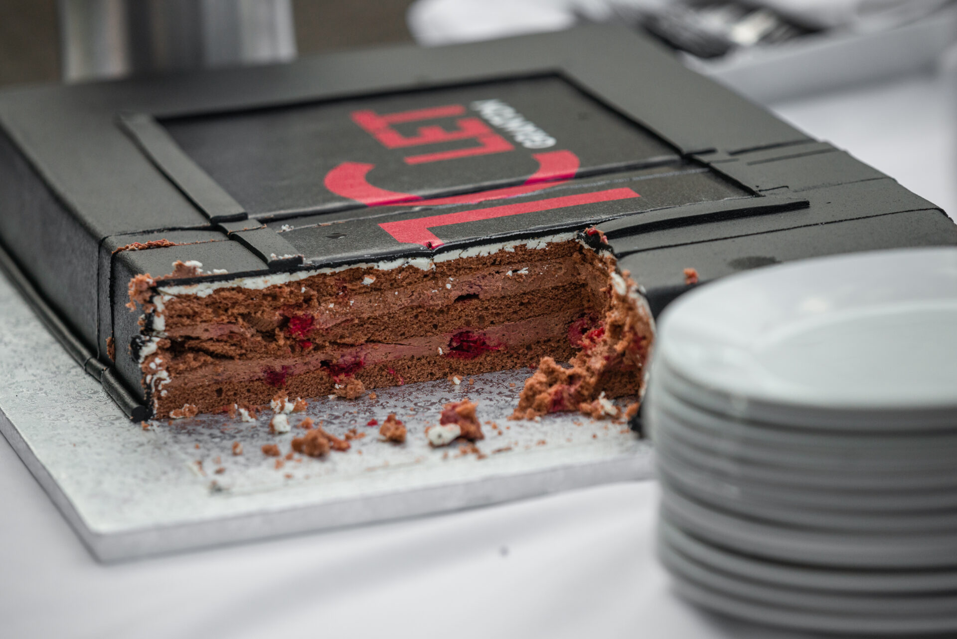 Celý večer se pak nesl ve znamení příjemné hudby, smíchu, dobrého jídla a pití. Dokonce i proslov našeho CEO Honzy se nenatáhl na dobu delší, než zvládne uběhnout ručička hodin v devadesátistupňové výseči, čehož se někteří z nás, a zkušenost říká, že ne neprávem, obávali. Po chvilce dojetí a vzpomínání přišla řada na krájení dortu. Čokoládového s malinami, jako by tomu osud snad chtěl, abych si dala víc než jeden kousek…