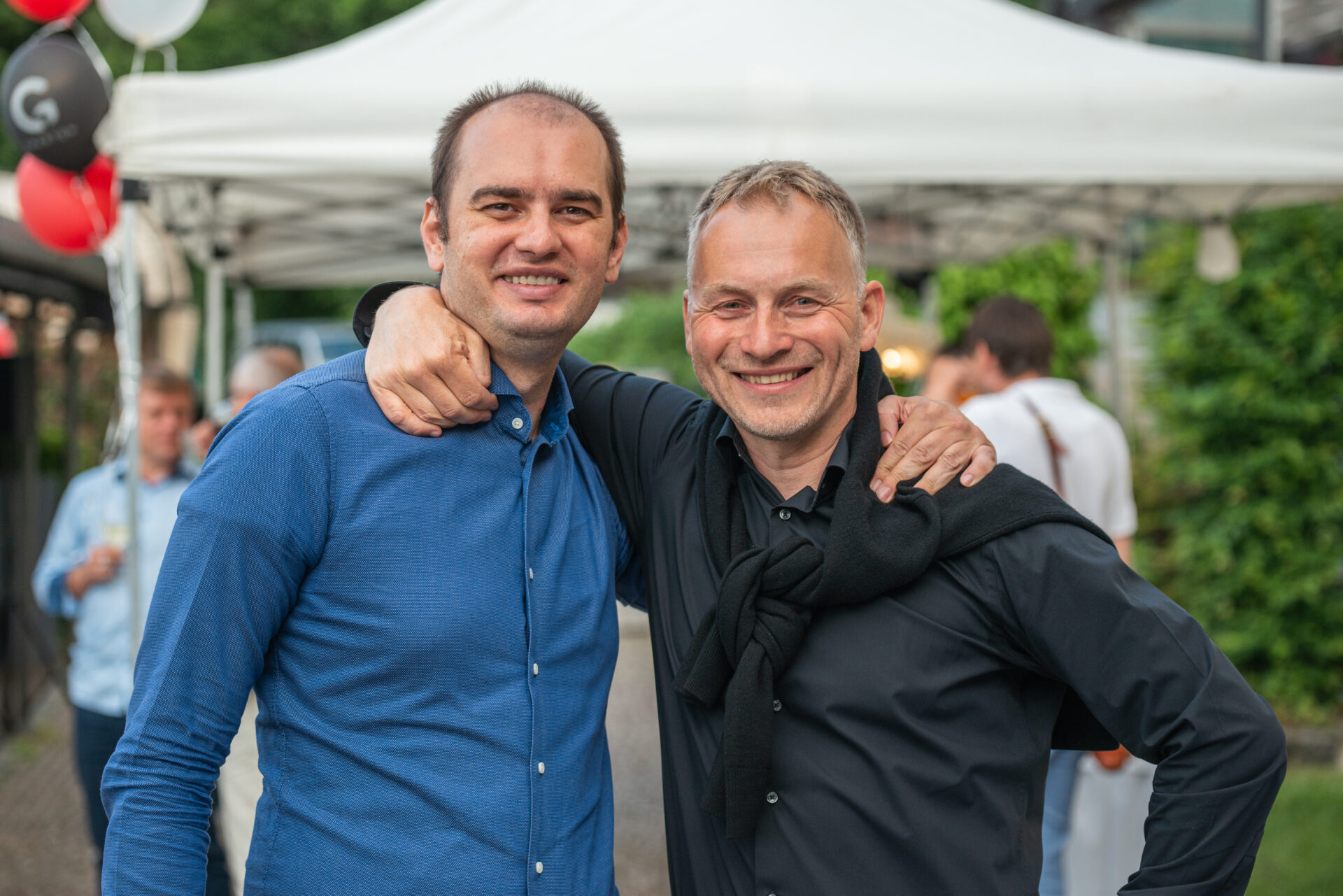 HR tým, po tom, co vzkřísil jednu ze svých členek po výšlapu na Nebozízek, začal s přípravami na místě cca čtyři hodiny před vypuknutím celé akce. Lukáš dovezl všechny potřebné komponenty k sestavení dárků a začali jsme plnit krásné černé krabičky proseccem a dvěma skleničkami na sekt s logem Grantonu. Po nějaké době nám přijel pomoci i náš COO Tom, jelikož se nezalekne žádné práce ani příležitosti nám pomoct (hlavně s balonky plněnými heliem). Schválně, jestli si tipnete, kolik skleniček jsme nakonec donesli v celku dolů, když večírek skončil?